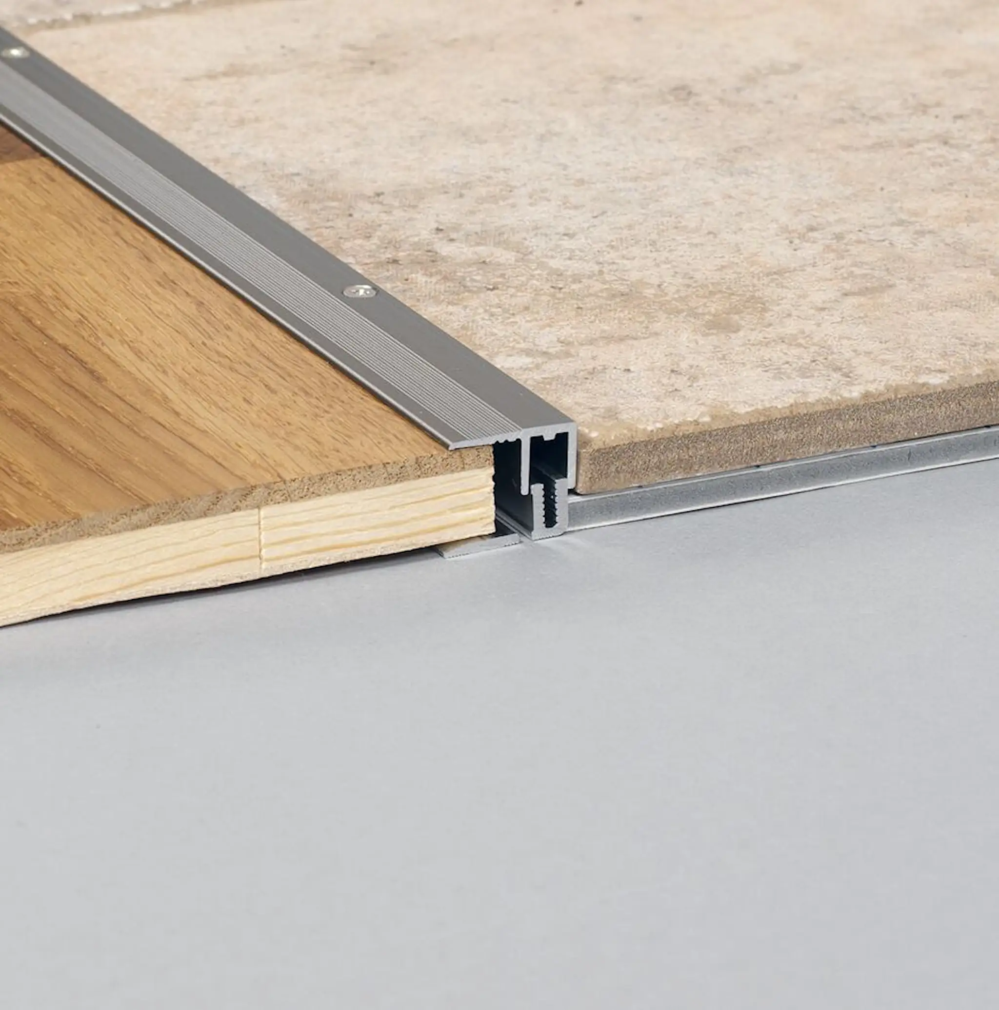 Alu-Profile für eine moderne Optik Ihres Kährs-Bodens. Ein besonders breites Basisprofil für eine sichere Montage am Estrichtrand.