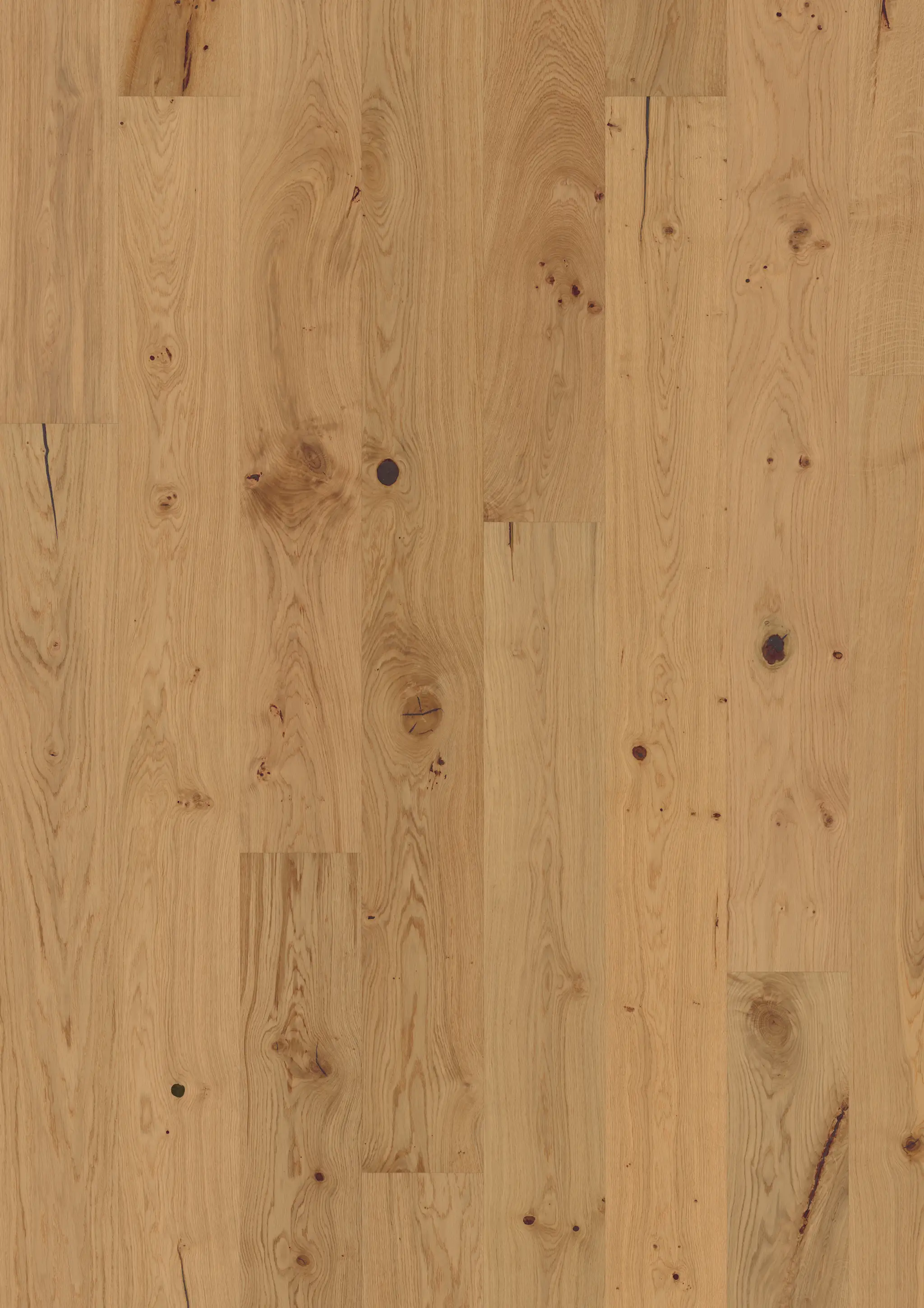 Bei der Eiche Primrose darf die natürliche Eiche in voller Pracht wirken – farblich unbehandelt und unverfälscht , sodass die warmen Holztöne ungehindert durch die geölte Oberfläche strahlen. Jede Diele wird sorgfältig gebürstet, um die natürliche Maserung hervorzuheben.
