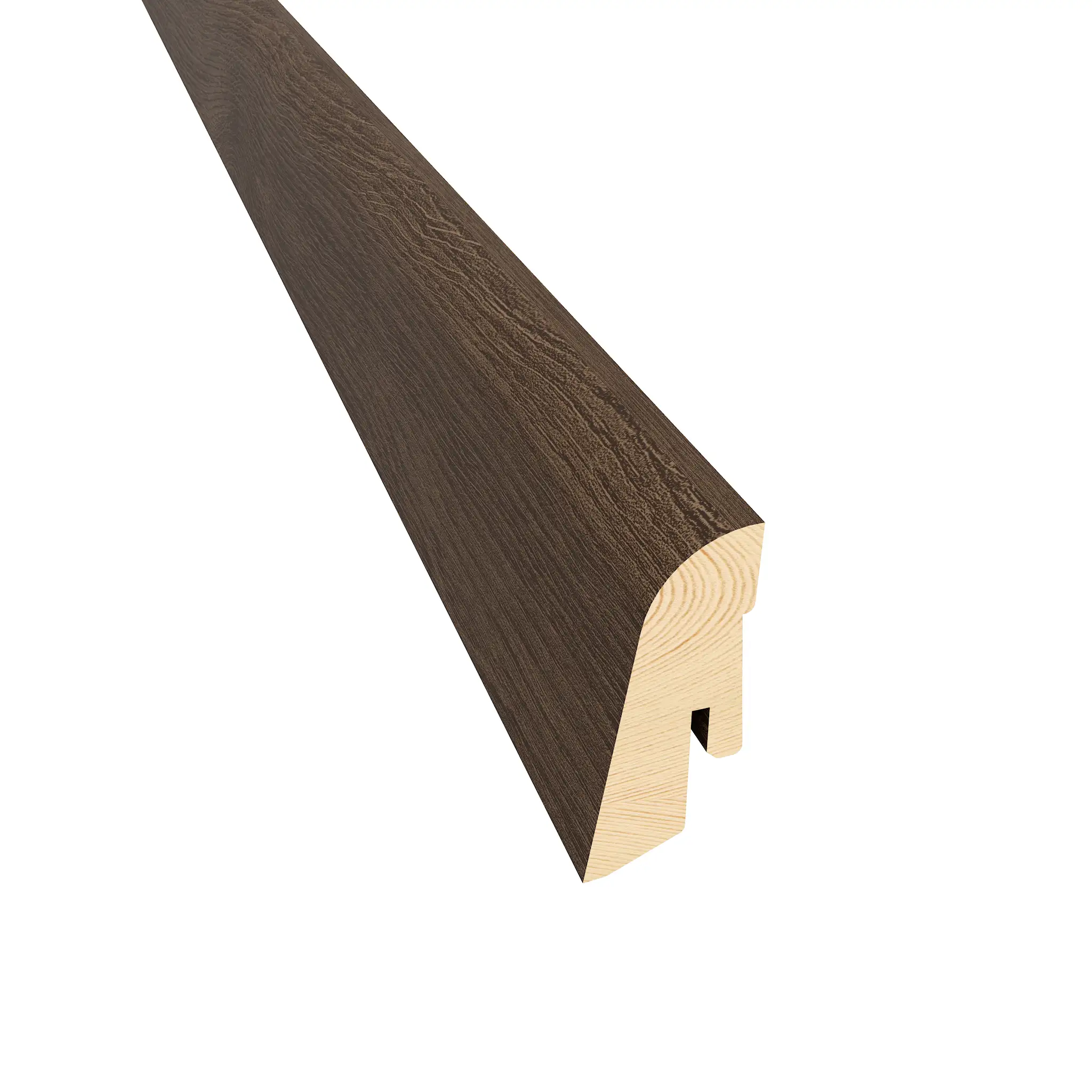 Furnierte Sockelleiste für einen modernen Look Ihres Kährs Parketts. Passend zu Eiche Nouveau Black.