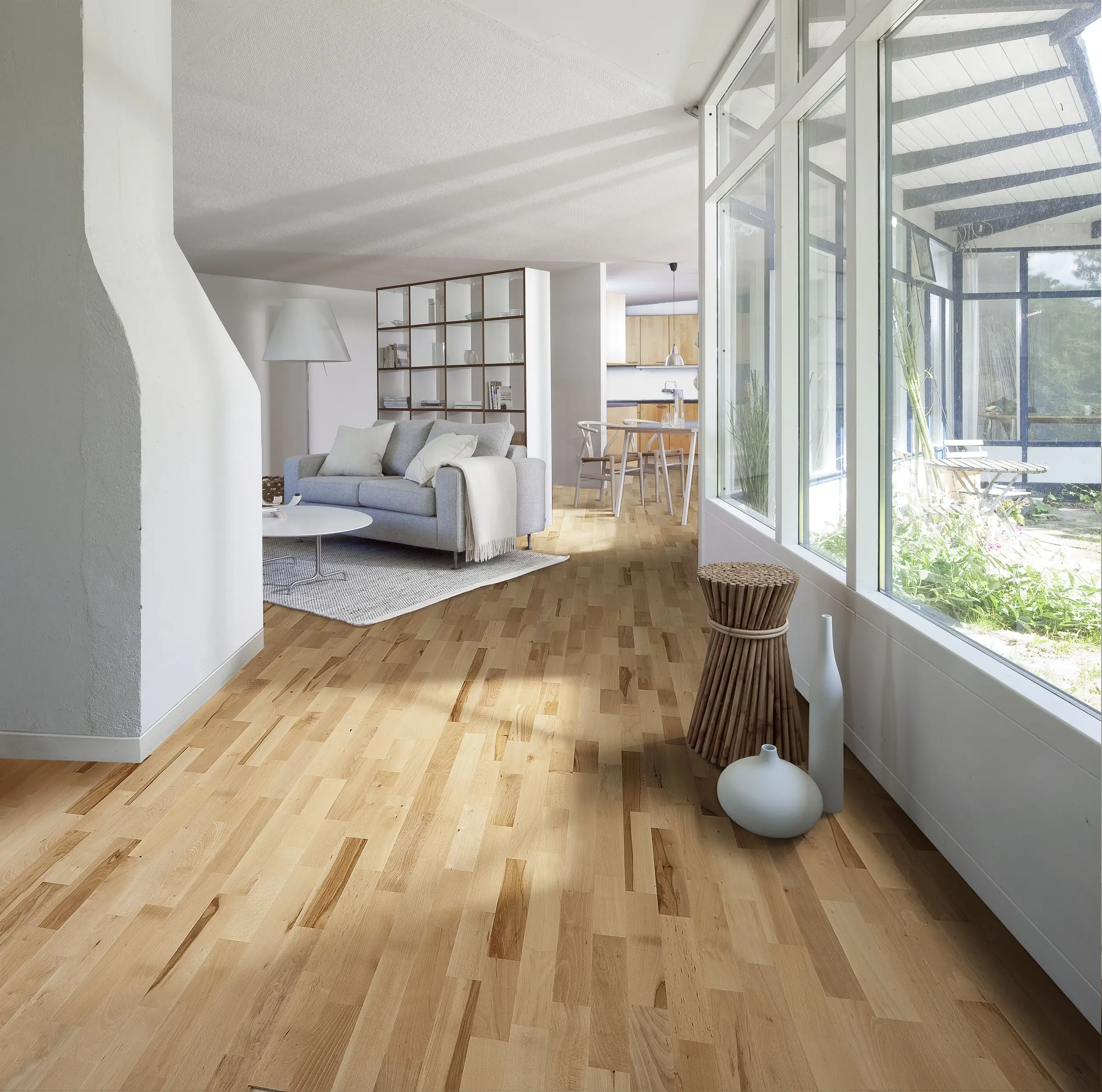 Verglichen mit kanadischem Ahorn hat Bergahorn einen besonderen Glanzton, der dem Raum eine klare, luftige Atmosphäre verleiht. Es ist relativ schmutzunempfindlich und aufgrund seiner vielseitigen Einsatzmöglichkeiten in der Innenarchitektur und Möbelindustrie sehr gefragt. Die helle Farbe des Bergahorns wird im Laufe der Zeit golden.