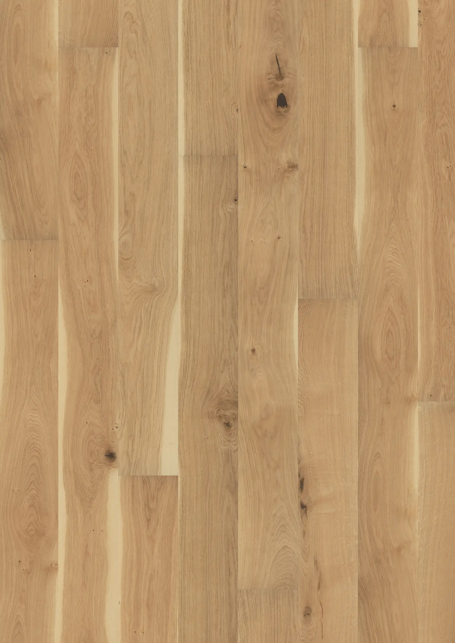 Eine leichte Färbung verleiht dem Holz ein modernes, helles Erscheinungsbild, das an frisch geschnittenes Eichenholz erinnert. Die geölte Oberfläche ist sorgfältig gebürstet, um die natürliche Maserung hervorzuheben und die Schönheit des Materials zur Geltung zu bringen. Dieses Produkt enthält Splintholz, das natürliche Farb- und Strukturvariationen mit sich bringt und so die visuelle wie auch haptische Wirkung bereichert.