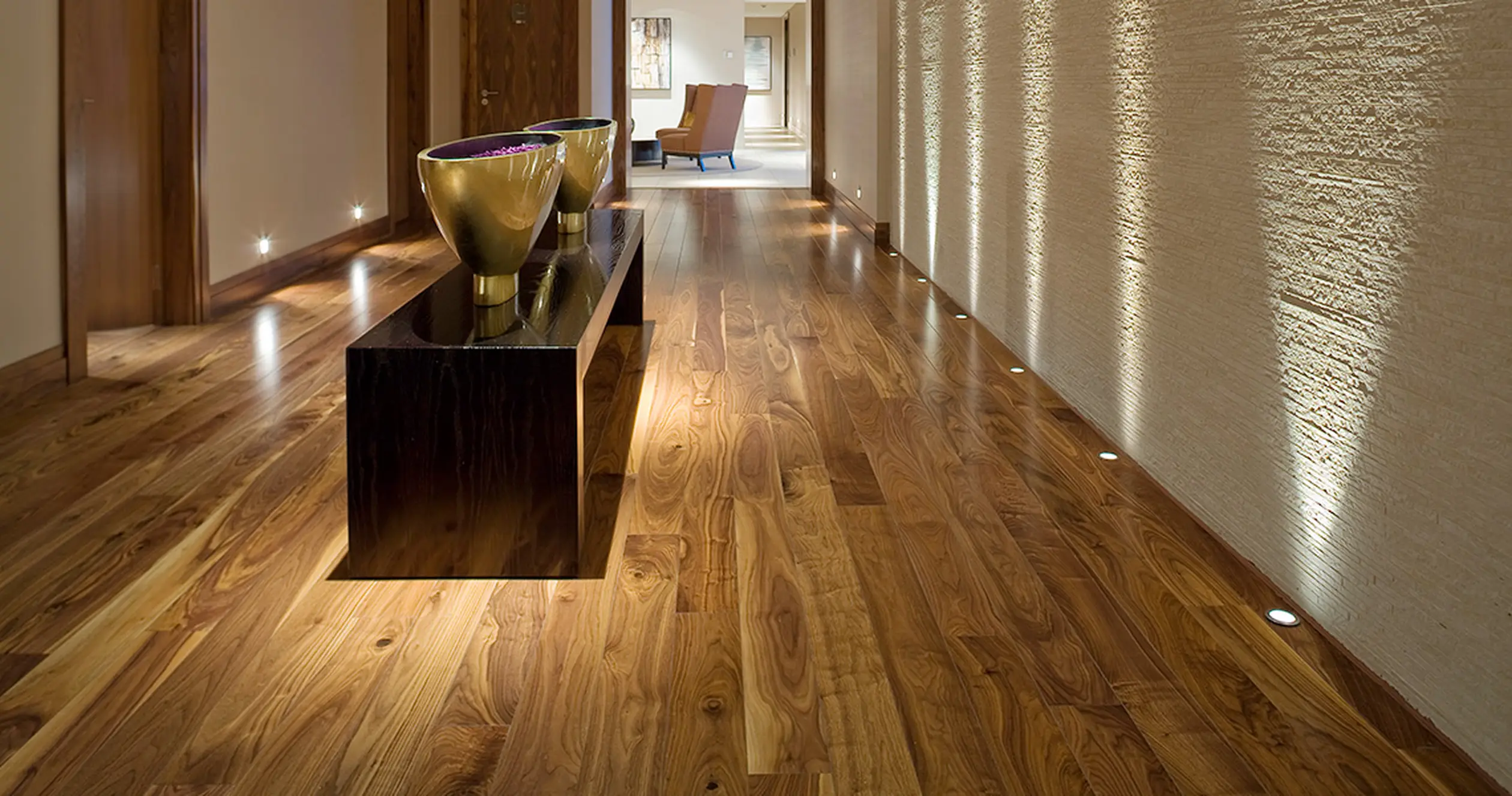 Gleneagles omges av 350 hektar vacker landsbygd i hjärtat av Skottland och har ett av världens mest lyxiga span – The Spa at Gleneagles. Detta nya spa har utformats av det ledande spaföretaget ESPA och den prisbelönta inredningsdesigern Amanda Rosa. Kährs valnöt Vermont lades i alla de 20 behandlingsrummen, korridorerna och relaxrummen. Med sin fylliga kastanjefärg är valnötsgolvet det perfekta komplementet till den eleganta krämfärgade och bruna färgsättningen som genomgående används i spat.