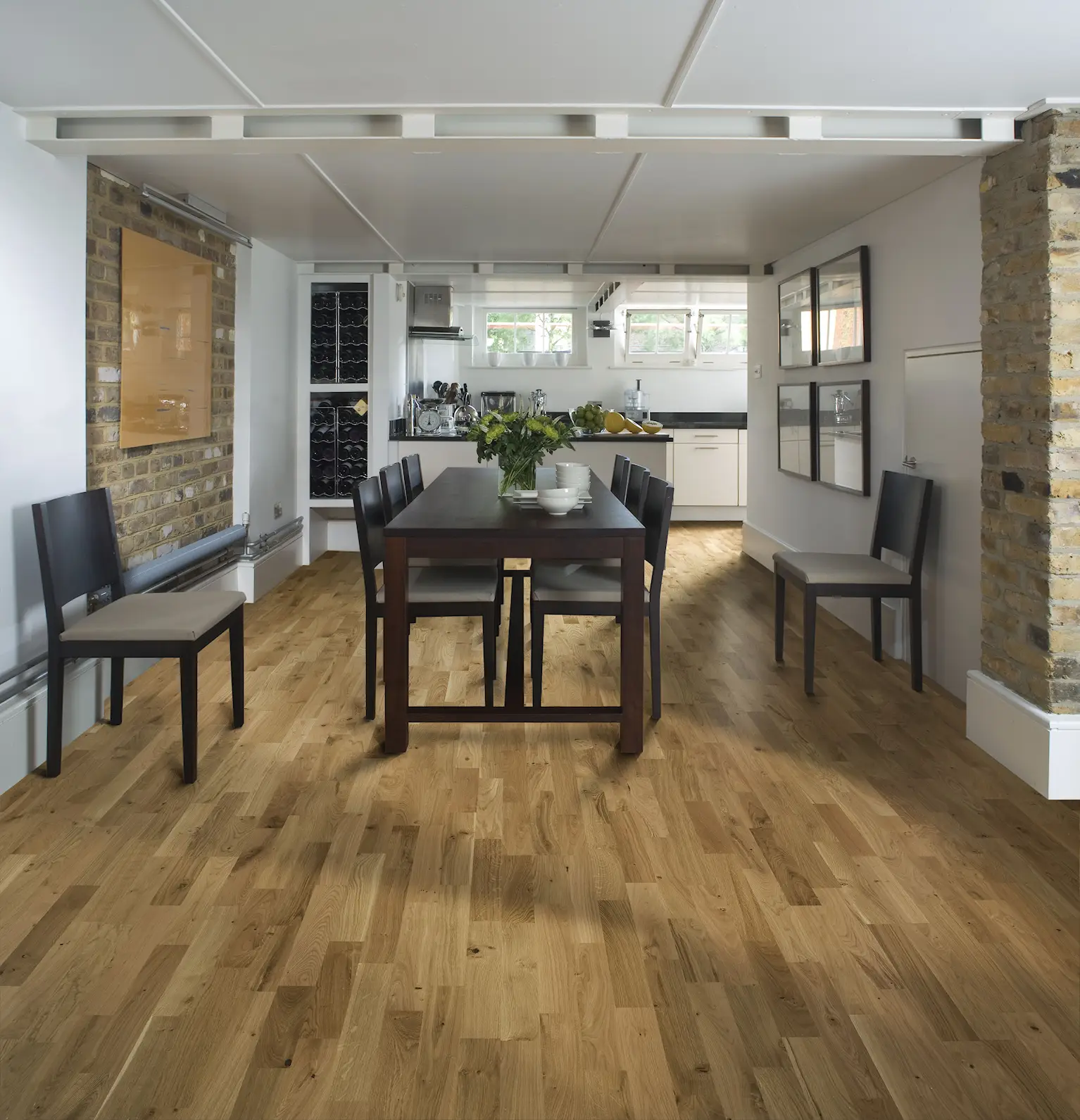 Ek Erve är en 3-stav i rustik stil med ekens alla naturliga färgvariationer. Får innehålla stora kvistar. Ska installationsoljas direkt efter läggning.