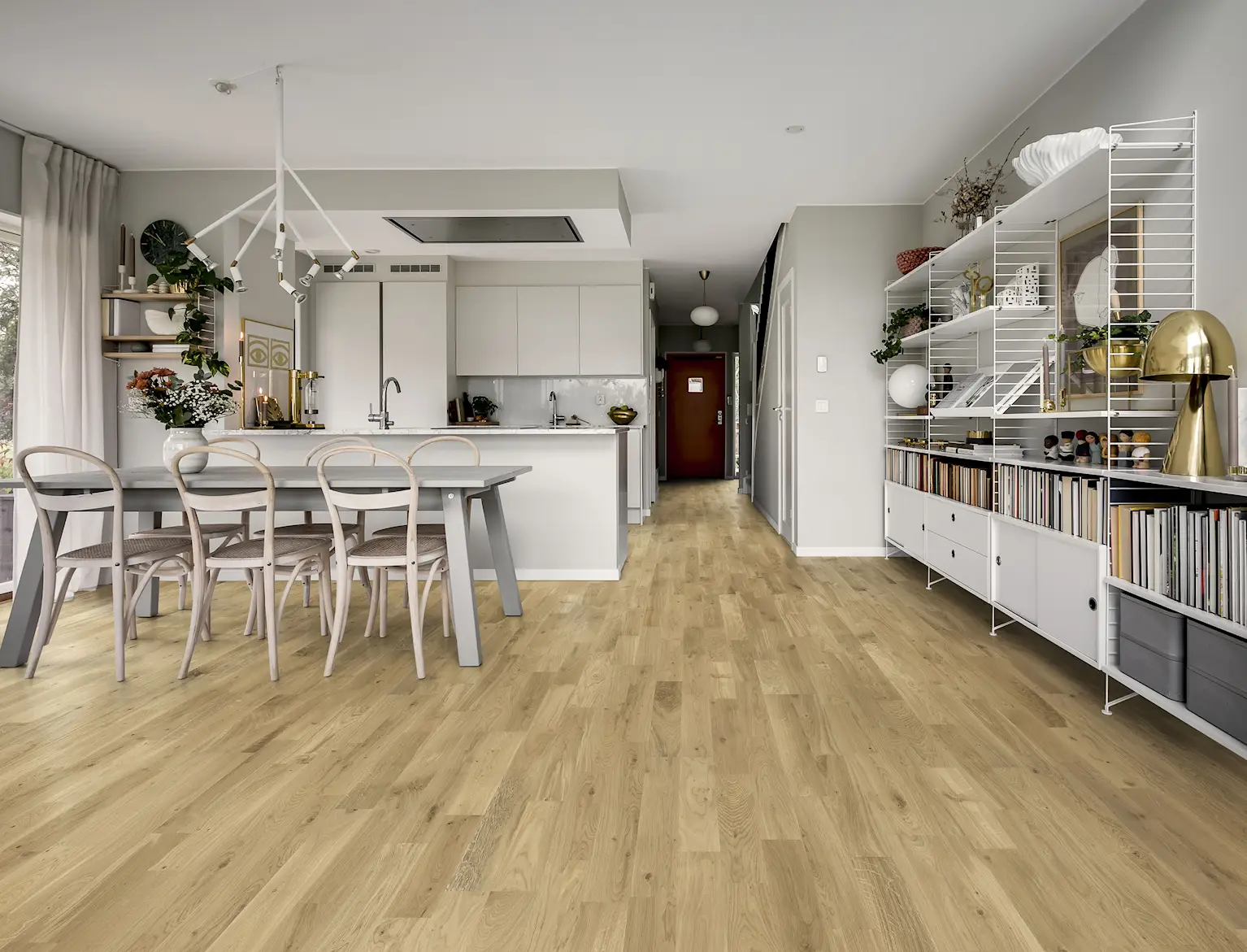 Ek Silk har en sidenmjuk pigmentering som ger detta 2-stavs ekgolv ett lugnt, något dämpat uttryck. De naturliga kvistarna tillför karaktär och skönhet, medan det eleganta 2-stavsformatet med stora stavar fulländar utseendet. Den matta lacken minskar reflektioner i golvets yta och skyddar golvet mot dagligt slitage, vilket gör Ek Silk till ett golv med återhållsam skönhet.