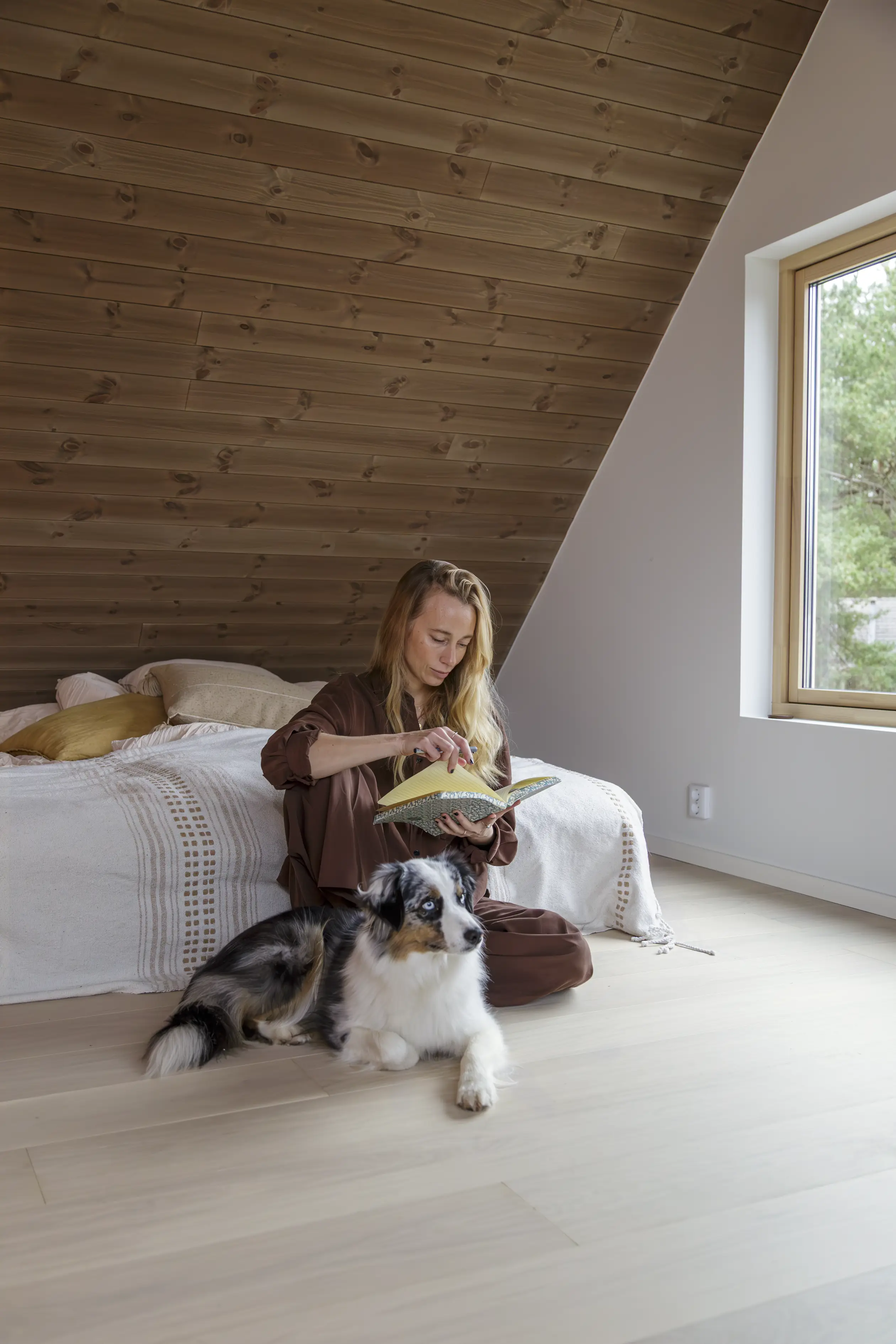 On Sweden’s southern coast, Therése Gerdman—Sustainability Manager at Kährs—has reimagined a beloved summer cottage into a year-round family home. With kids, dogs, and busy lives, she wanted a space that balanced old charm with modern function.