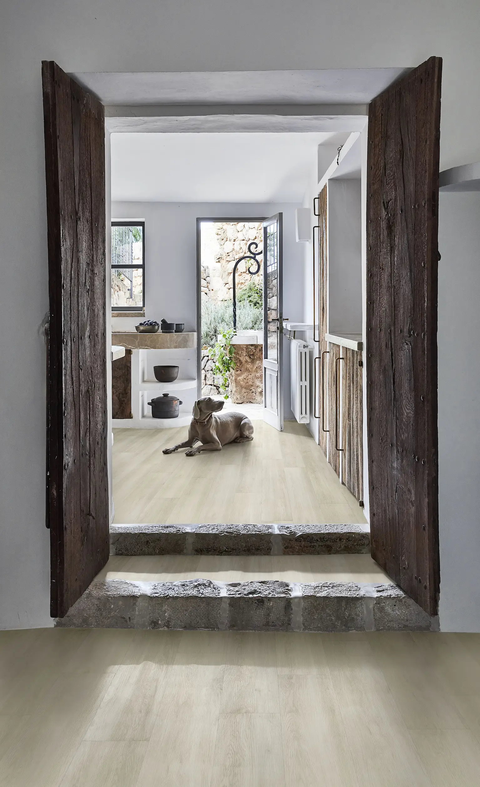 Kährs Rigid Click Luxury Tiles floor Aspen was inspired by white tropical beaches, a floor with a natural creamy white stain and silky feeling. Soft, gentle hues enhance the natural patterns of the wood design, including natural features such as knots and cracks.