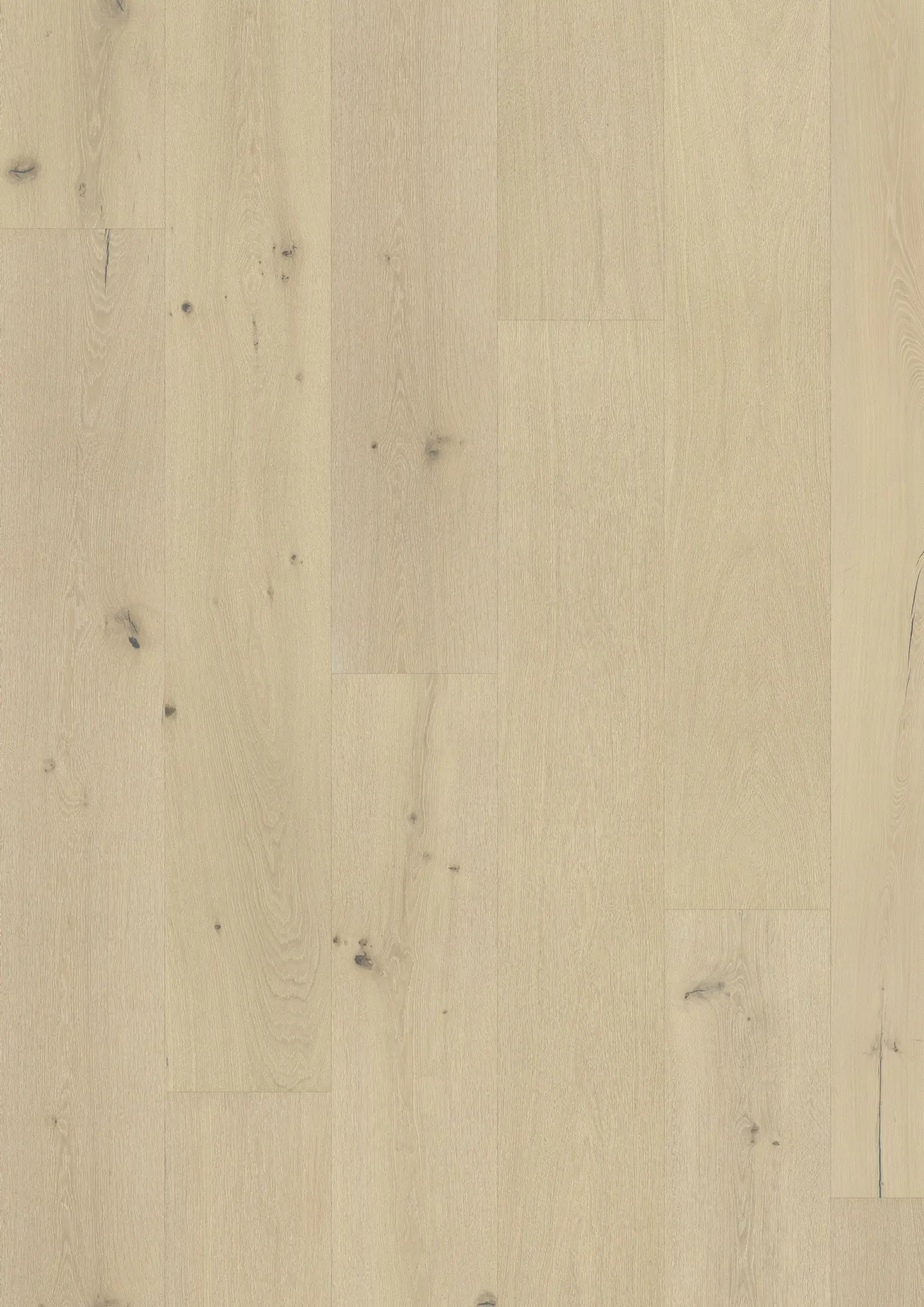 This classic single-strip oak floor from the Royal Collection features a misty white transparent stain, which enhances the organic design and allows distinctive gradations in the wood to come through. Four-sided micro-bevelling at the edges ensures a full plank look and feel. Each board is carefully brushed to bring out the character of the grain and highlight the natural texture of the wood.