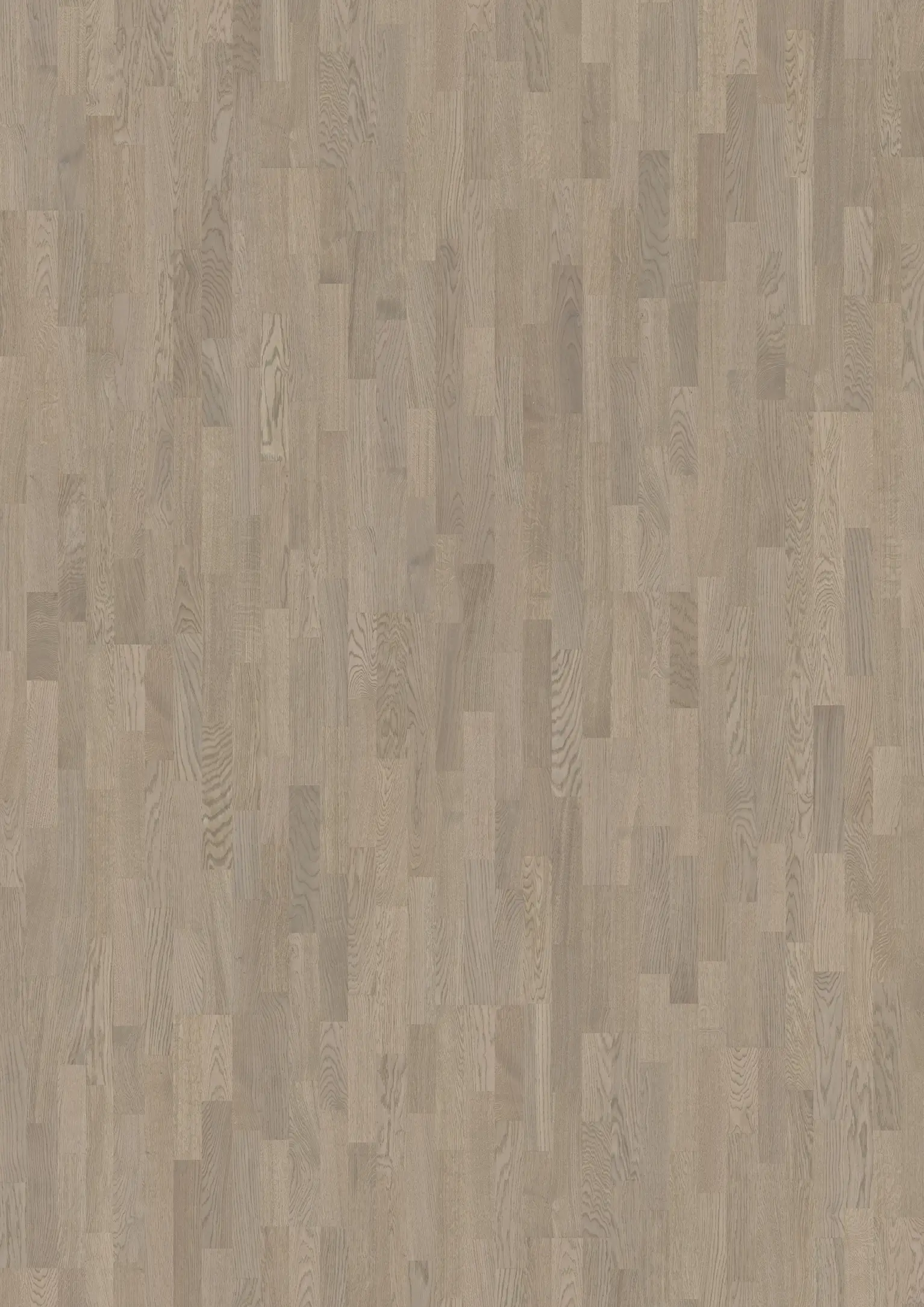 Mineral grey oak 3-strip floor with stoney earth tones. Features brushed grain and ultra-matt lacquer finish. Provides newly sawn timber look with glare-free protection against daily wear.