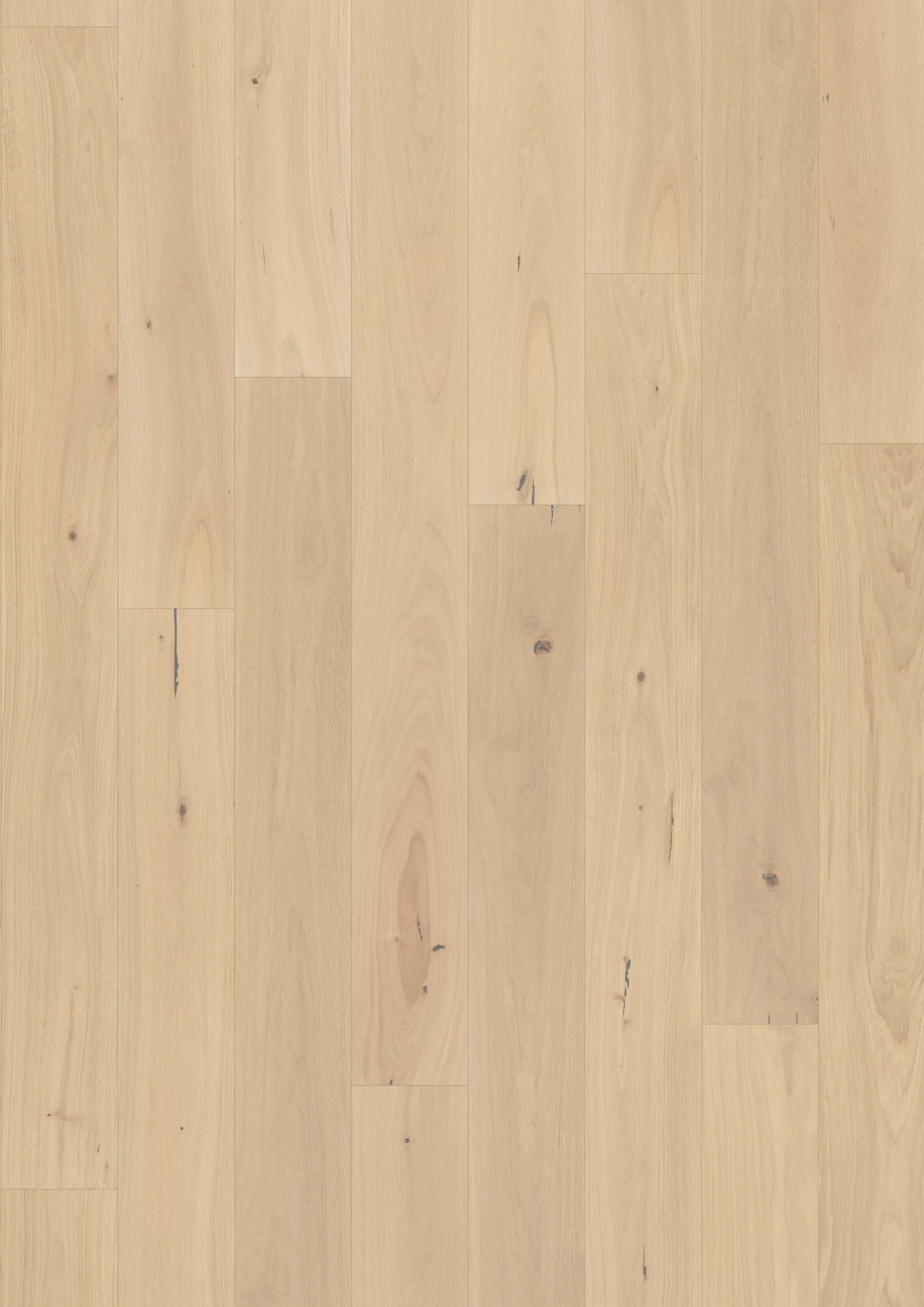 Oak Piazza CD Crème White is a premium 2-layer parquet flooring crafted from European oak, featuring knots and moderate colour variations. The plank format is highlighted by four-sided micro-bevelling, while the brushed and white oiled finish enhances the wood’s natural grain and texture. Kährs Piazza and Large Herringbone products can be installed together making it possible to use Piazza as frame board for herringbone pattern.