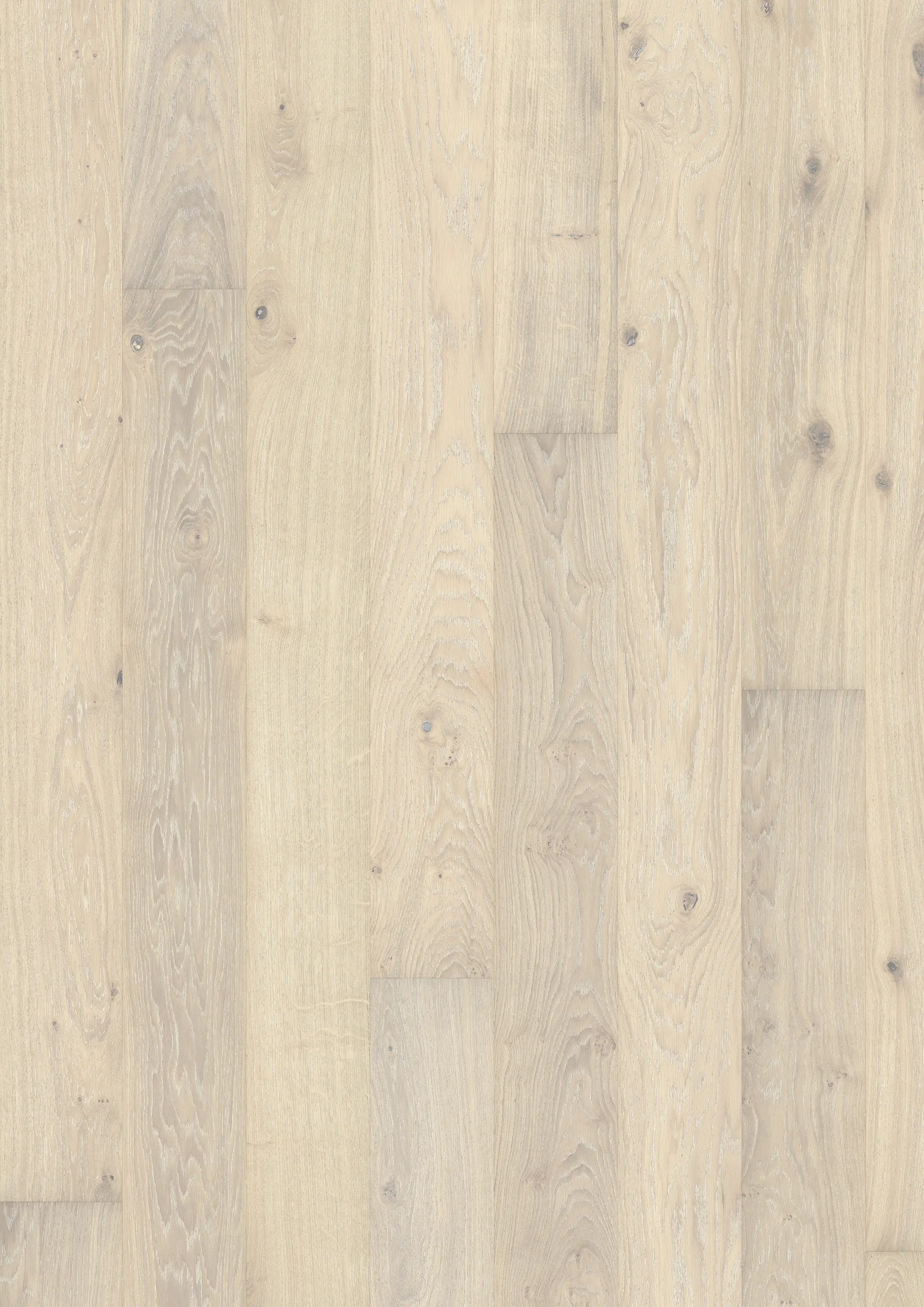The semi-transparent stain on this single-strip, white oak floor from the Classic Nouveau Collection allows the warmer hues to come through, giving the floor a light colour balance and a classically Nordic expression. Each board is carefully brushed to bring out the character of the grain and highlight the natural texture of the wood. Four-sided micro-bevelling at the edges ensures a traditional full plank look and feel. The matt lacquer finish eliminates glare while protecting the wood from daily wear.