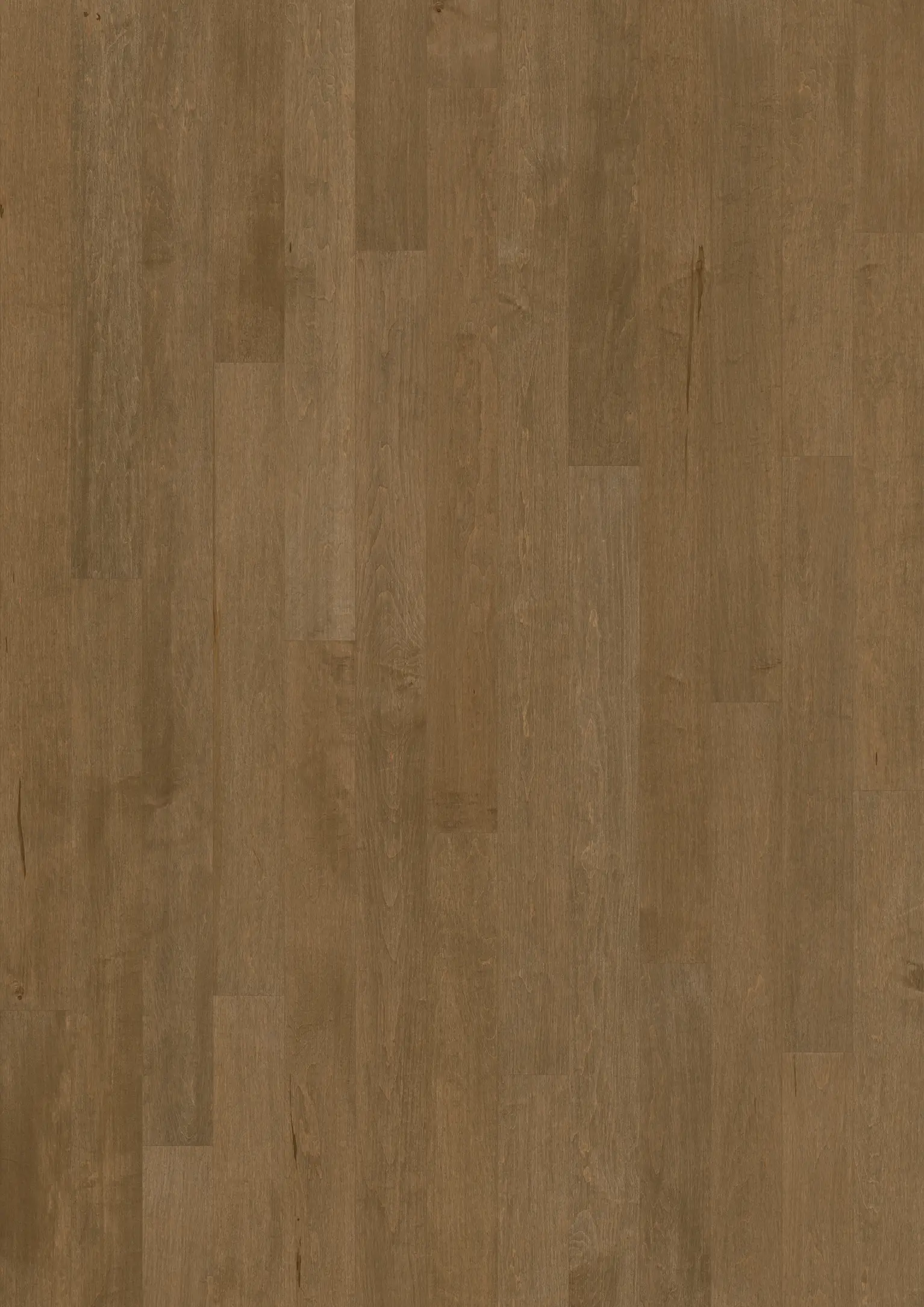 Light bronzed tones give this hard maple floor a refined look, inspired by Victorian stone architecture. The elegant hues enhance the wood’s natural grain for a timeless and sophisticated style.