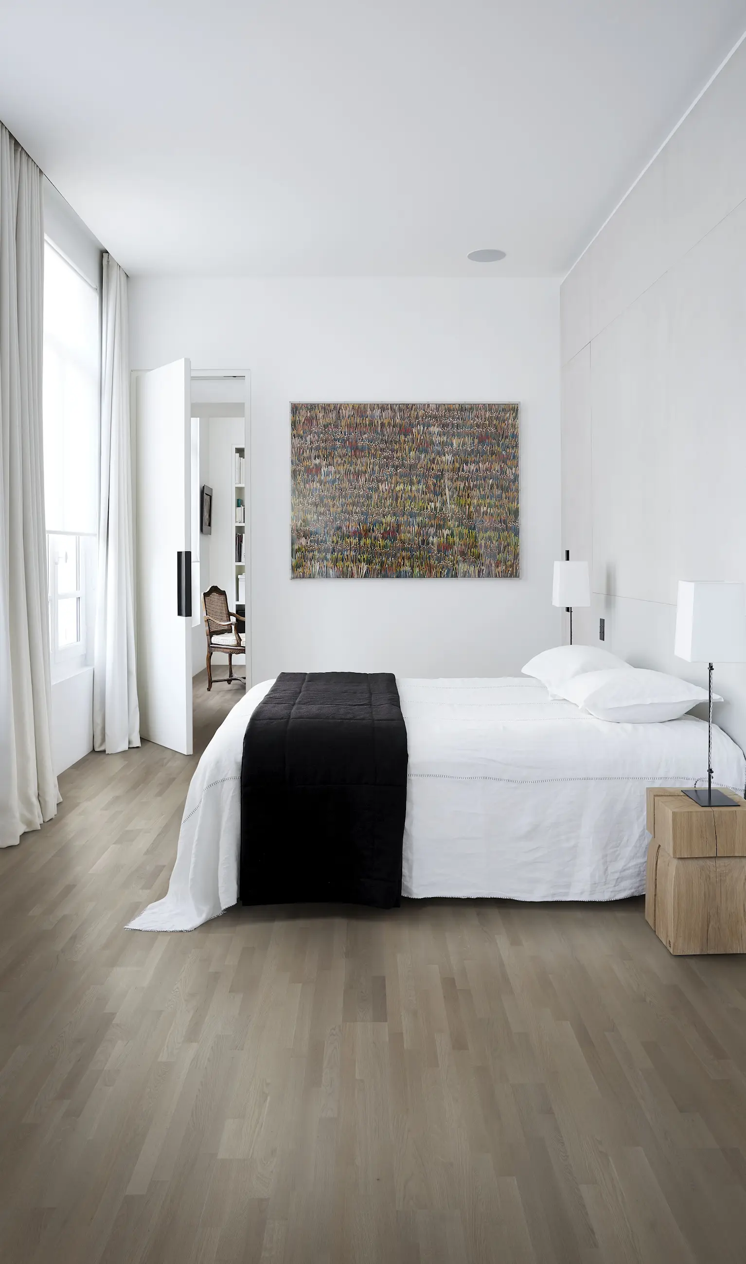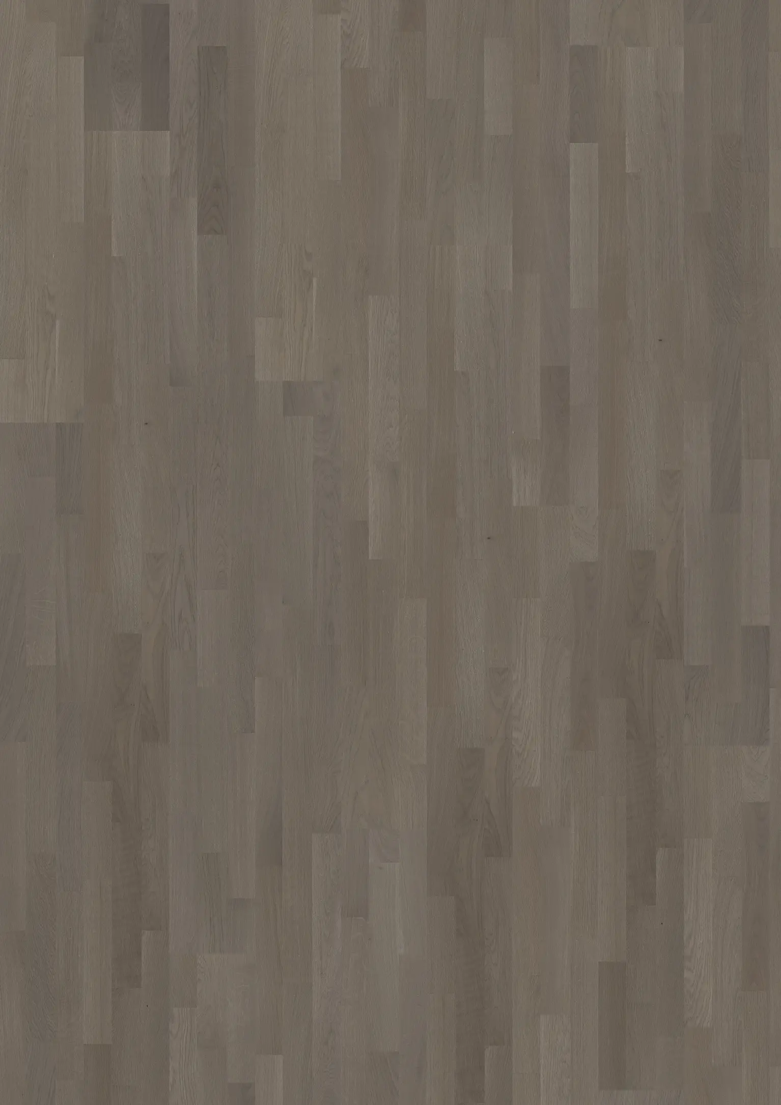 3-strip oak floor in warm grey tones, inspired by the beauty of raw clay. Matt lacquered for a modern yet classic, timeless look.